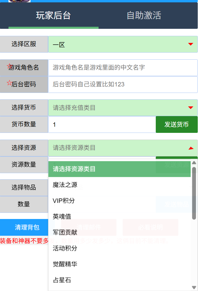 核心功能是发送物品给玩家的账号,该类物品可以是:充值币、装备、英雄卡、经验值、抽卡道具、充值礼包等等,只要改后台有的基本就可以发